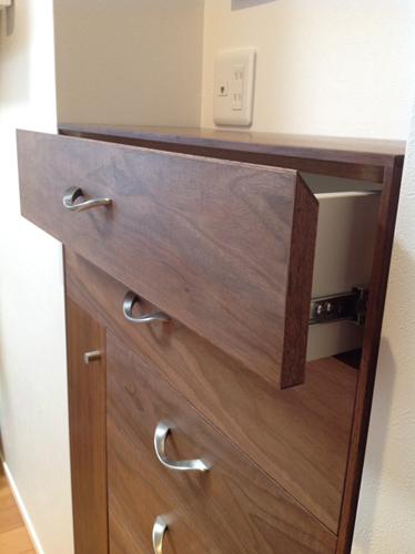 デザインにもこだわっていて、側板の縁が引き出しを閉めたときに、細く見えるように、掘りこんであります。